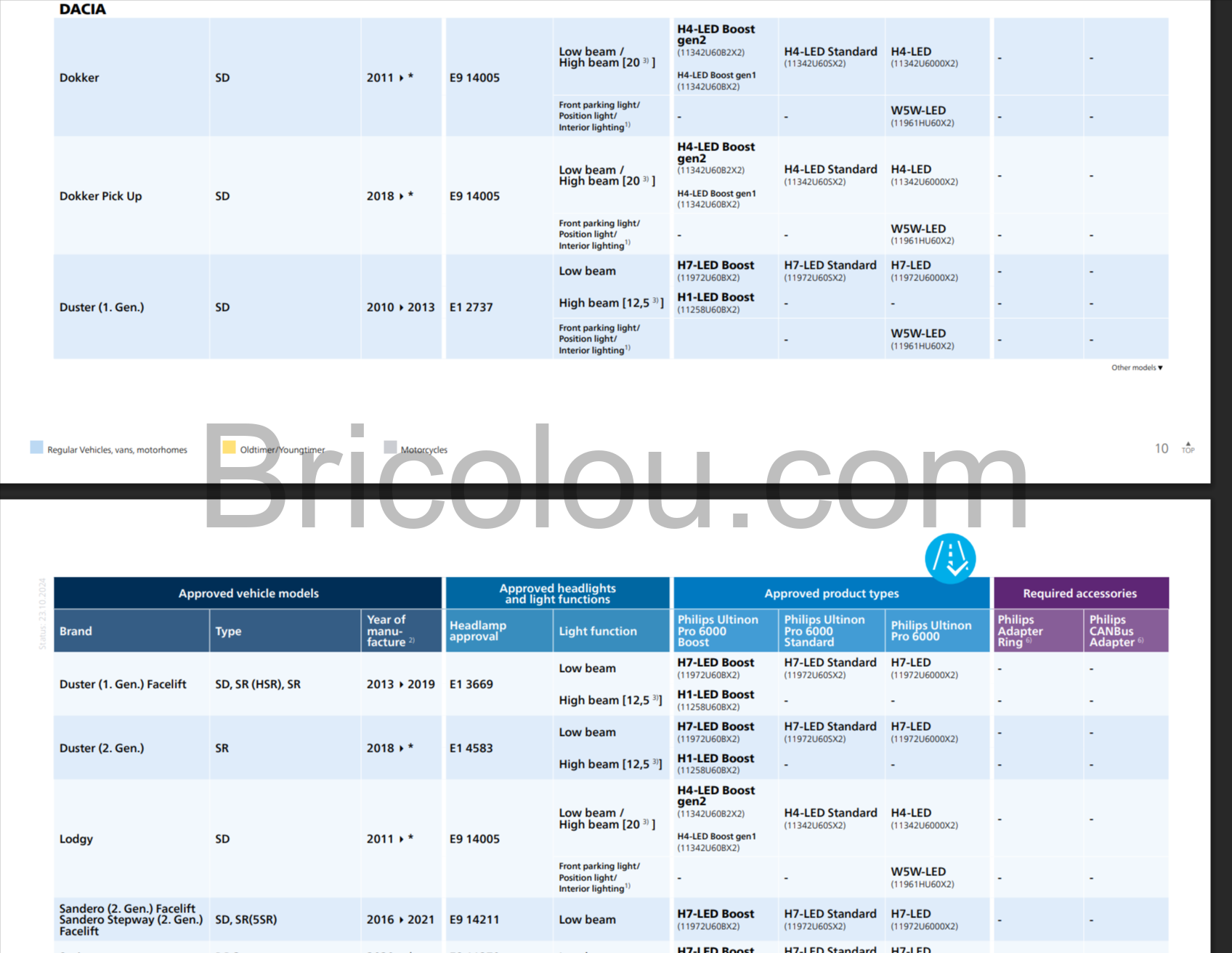 Philips Ultinon Pro6000 Boost gen2 Lodgy compatible
